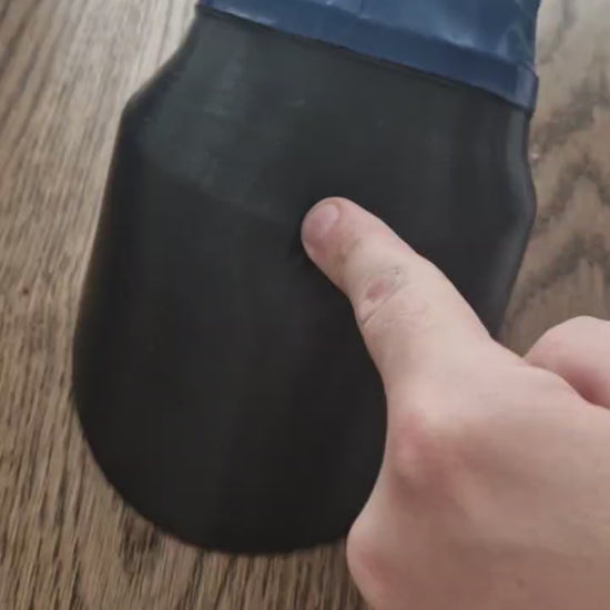 The hoof itself is 3D printed at best quality, with quality control, from Nylon filament. This filament is very similar to latex, and so they make good combination. This material is very comfortable and allows long term use. If you are allergic to latex, this is good choice as well (If ordered without sleeve).